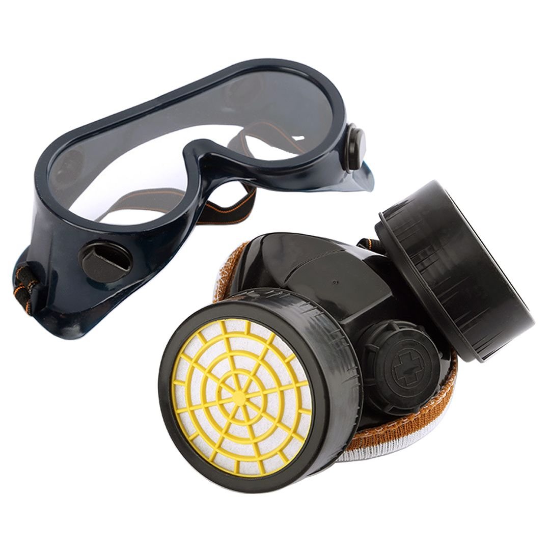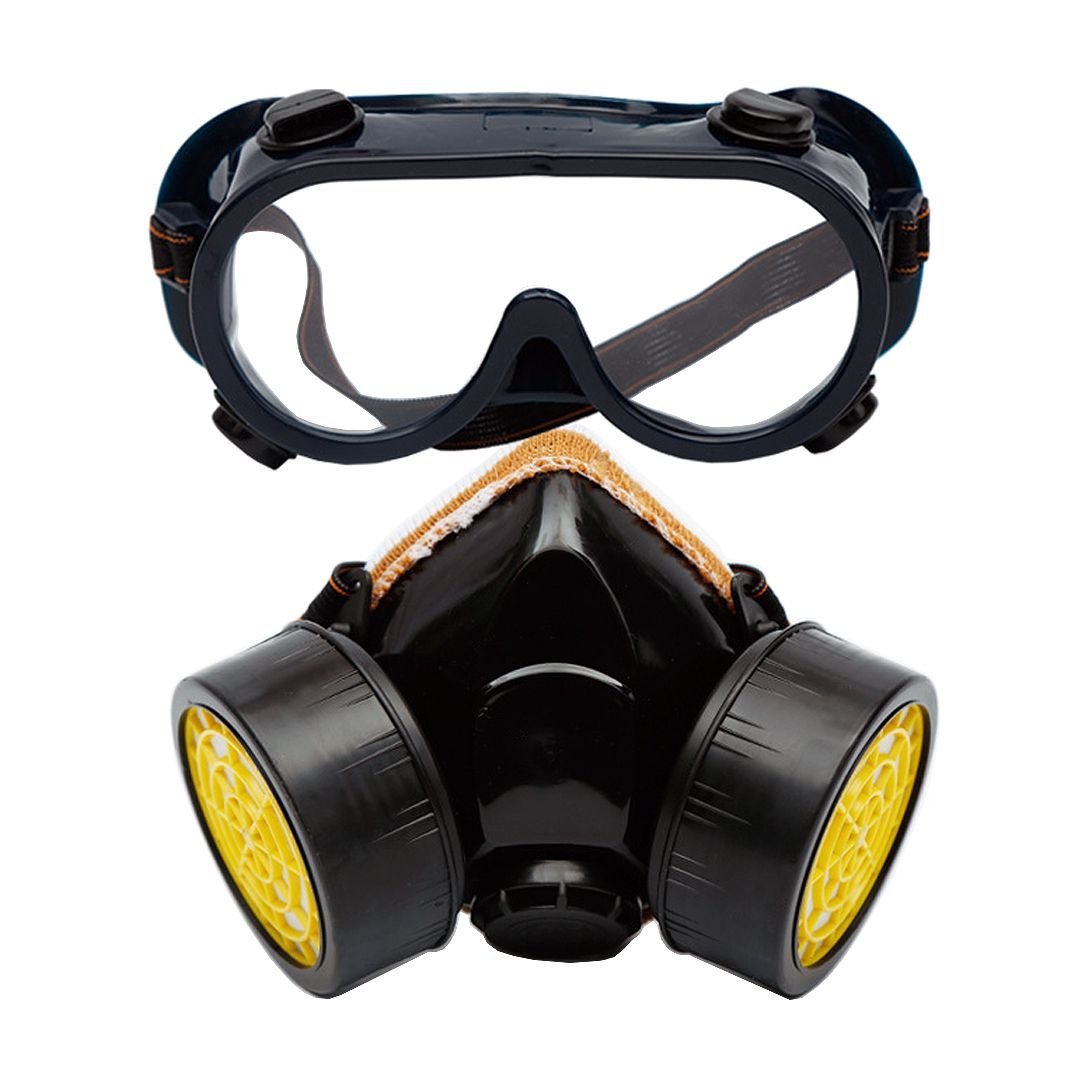 This Safety Goggle and Dual-Canister Respirator Mask Set provides comprehensive eye and respiratory protection for hazardous working environments. Designed for professional use, the set effectively shields users from dust, harmful gases, organic vapors, chemical splashes, and airborne particles.