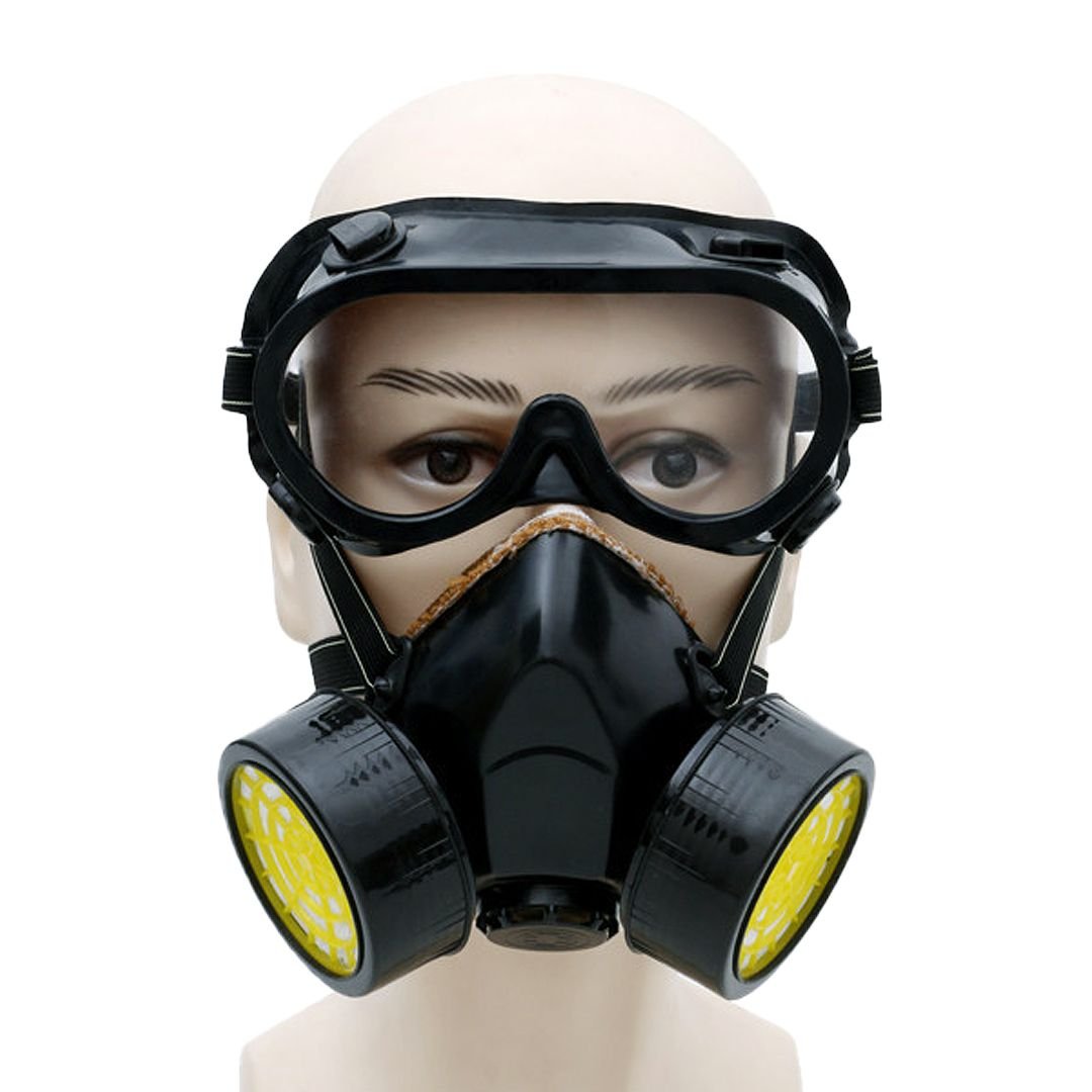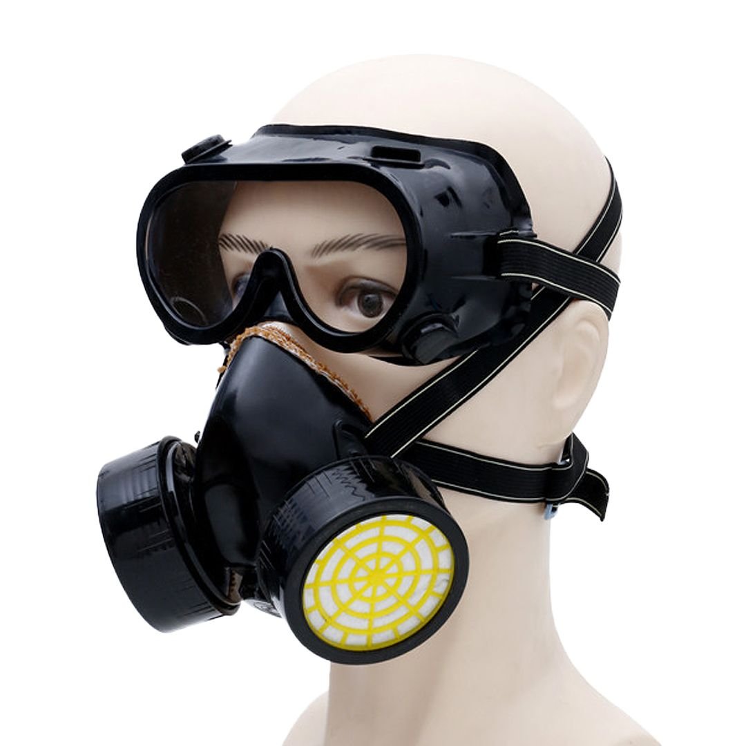 The safety goggles feature a clear, impact-resistant lens with a secure seal to protect the eyes while maintaining excellent visibility. The dual-canister respirator mask is made from soft, thermoplastic material for a comfortable and airtight fit. Equipped with low-resistance breathing valves and activated carbon filters, it ensures smooth airflow while efficiently filtering toxic gases and dust.
